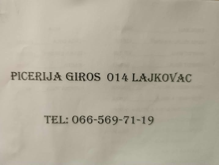 U šetališnoj zoni tržnog centra u Lajkovcu počela je sa radom PICERIJA GIROS 014 LAJKOVAC. Ovo je prvo mesto u Lajkovcu na kome se može kupiti giros.