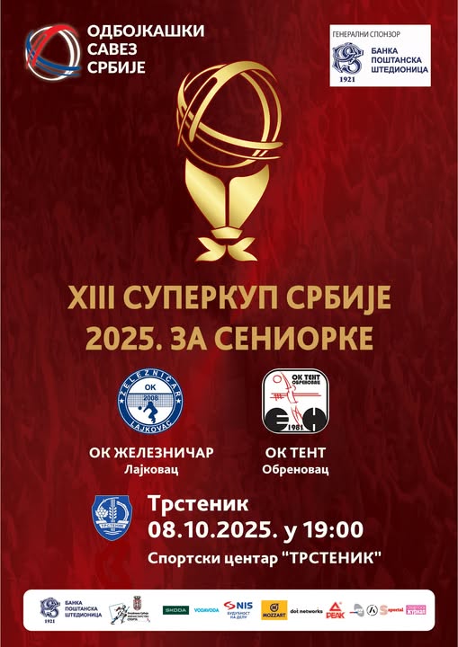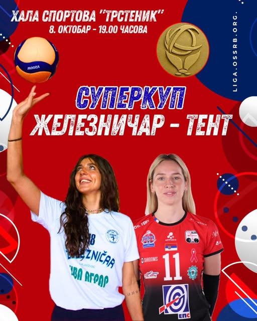 Železničar iz Lajkovca, prvak Srbije i pobednik Banka Poštanska štedionica Superlige 2024/2025, i TENT iz Obrenovca, pobednik Kupa Srbije 2024/2025, igraće u meču XIII Superkupa Srbije 2025. u konkurenciji odbojkašica, u sredu, 8. oktobra, u Hali sportova u Trsteniku, od 19 časova, uz direktne prenose na RTS 2 i TV Arena Sport.