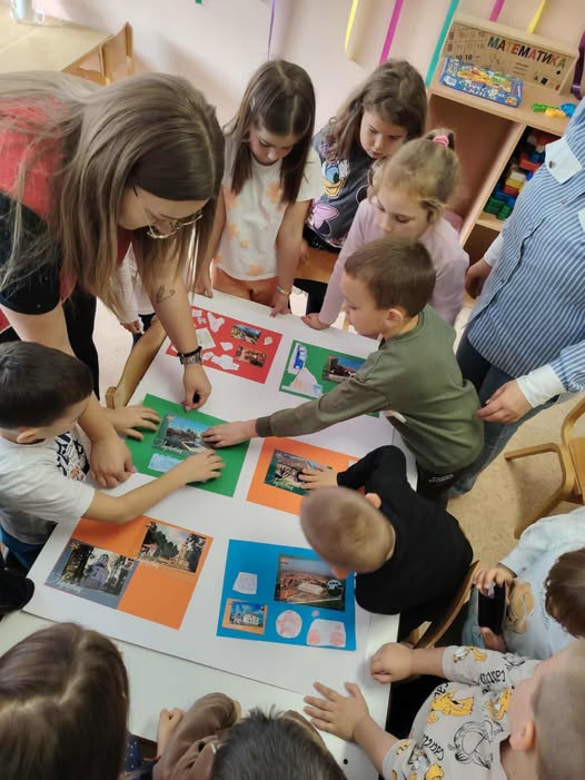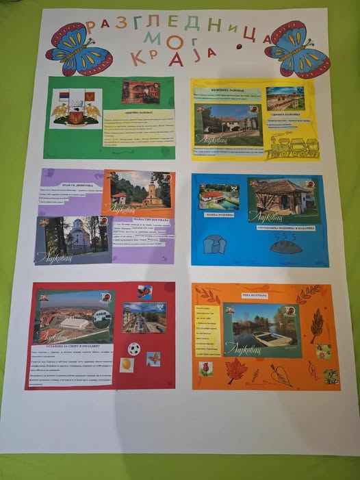 Povodom obeležavanja Dečije nedelje, čija ovogodišnja tema glasi: “Imam prava da se igram, da se smejem, maštam, stvaram – i u bolji svet pretvaram”, danas su mališani predškolskog uzrasta vaspitača Jelene Petrović i Tamare Adamović imali priliku da učestvuju u edukativnoj i likovnoj radionici pod nazivom Razglednica mog kraja u organizaciji Turističke organizacije opštine Lajkovac.