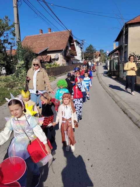 Karnevalska povorka krenula je ispred vrtića, spustila se u glavnu ulicu, prošetala do Gradskog trga, odakle se nakon kratkog programa i druženja uz slatkiše vratila u vrtić.