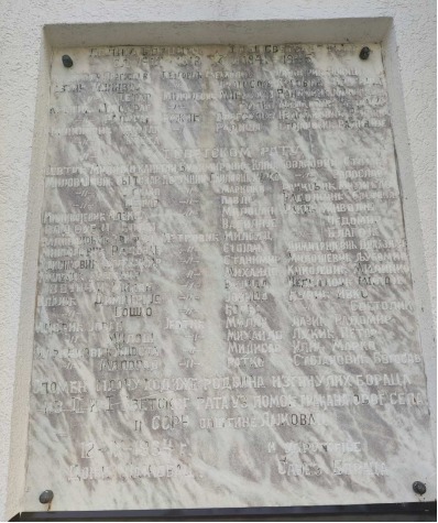 Foto: Spomen ploča žrtvama I i II Svetskog rata na ulazu u školu, a spisak je napravljen, odnosno prepisan sa ploče u manastiru Bogovađa 1952.