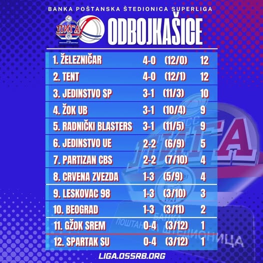Železničar i TENT su na vrhu tabele sa istim brojem bodova (12), oba tima su ostvarila pobednički niz na startu šampionata i upisala su po četiri trijumfa, a već ovog vikenda sledi direktan duel Lajkovčanki i Obrenovčanki. Dileme nema, biće to uzbudljiv meč.