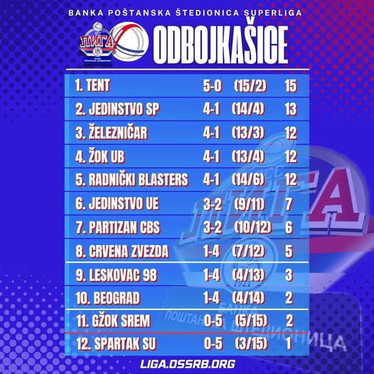 Tabela nakon pet odigranih kola u ovoj sezoni:
