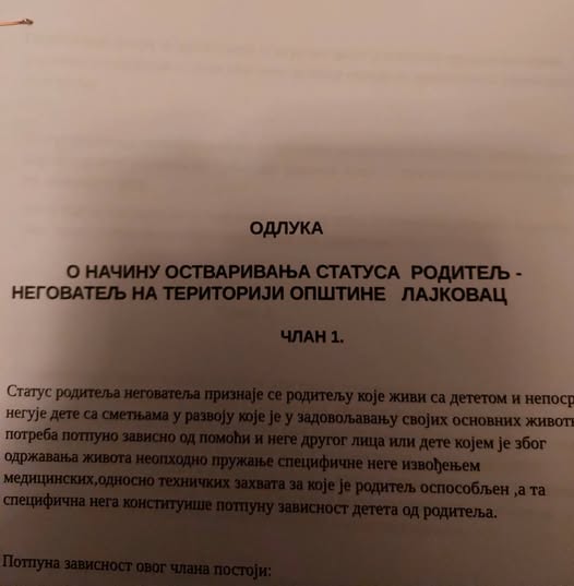 I LAJKOVAC NA MAPI OPŠTINA U BORBI ZA STATUS RODITELJ – NEGOVATELJ