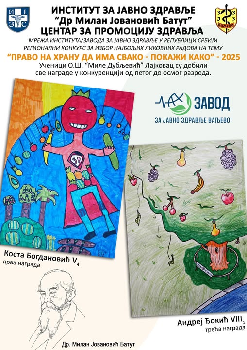 Svake godine regionalni Zavodi za javno zdravlje i Institut za javno zdravlje „Dr Milan Jovanović Batut“ organizuju tematska predavavanja i konkurse, u cilju edukacije najmlađih na temu zdravlja, a lajkovački osnovci su redovni favoriti za nagrade na tematskim likovnim konkursima.