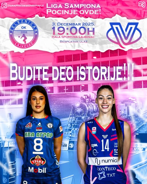 Ekipa Železničara, prvak Srbije i pobednik Banka Poštanska štedionica Superlige 2024/2025. u konkurenciji odbojkašica, srpski prvak iz Lajkovca, predstavlja Srbiju u najelitnijem evropskom takmičenju, a sve domaće utakmice igraće se u Sportskoj hali u Lajkovcu i ulaz će biti slobodan.