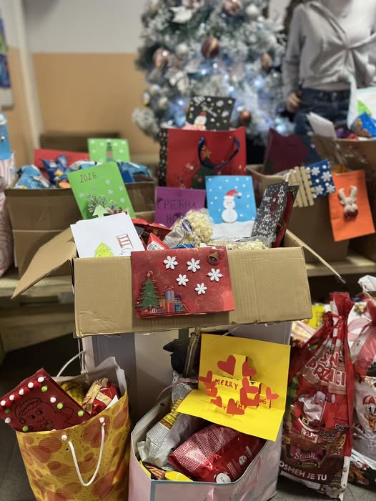 Naši đaci su i ove godine, kako bi pokloni bili još ličniji, pripremili nešto posebno. Da bi paketići bili zaista jedinstveni, pobrinuli su se naši vredni učenici i nastavnici koji su izrađivali praznične čestitke na časovima tehničkog, unoseći u svaku mnogo mašte i truda. Članovi literarne sekcije su u te čestitke utkali najtoplije poruke podrške, prijateljstva i nade.