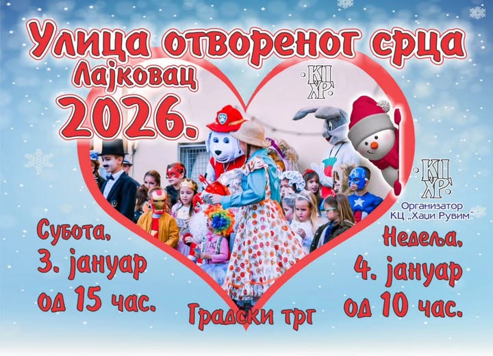Lajkovac i ove godine dvodnevnom manifestacijom otvara srce za najmlađe i sve ljude dobre volje. Očekuju se dva dana praznične čarolije, osmeha i druženja na Gradskom trgu.