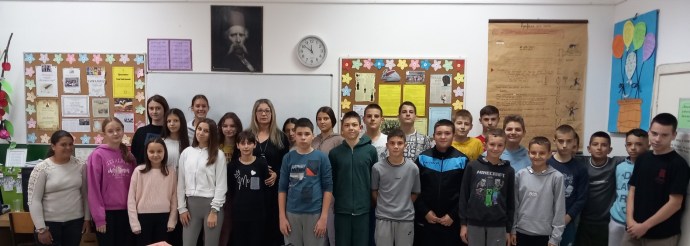 Foto: Deo članova Lingvističke sekcije „Čuvari jezika” OŠ „Mile Dubljević” sa svojom nastavnicom mentorkom Lidijom Marić Jovanović