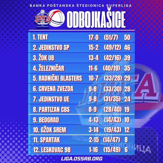 Tabela, nakon 17. odigranih kola: