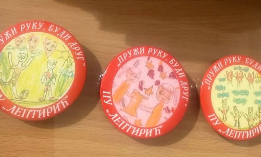 Kao uspomenu na ovaj dan, deca su dobila bedževe sa svojim unikatnim crtežima, koje će ponosno nositi kao prave male medalje za dobrotu.