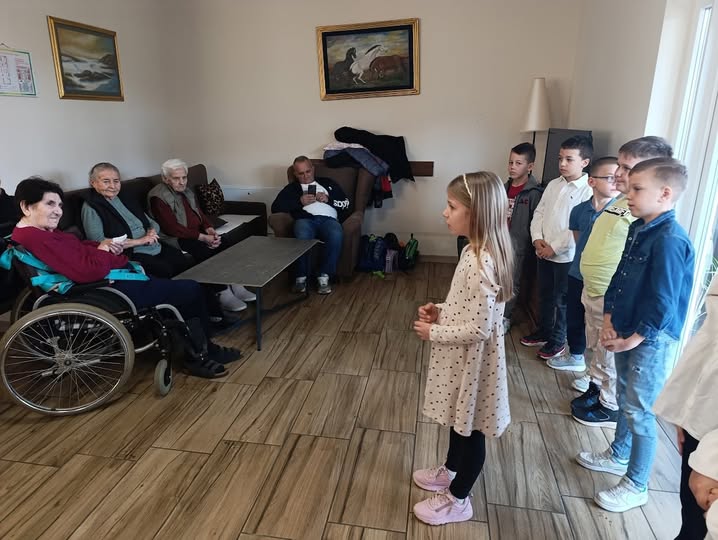 I  upravo tim povodom, učenici I/1 odeljenja OŠ“Dimitrije Tucović“ iz Jabučja, su sa svojom učiteljicom Suzanom Tasić, danas upriličili posetu i druženje štićenicima Doma za stara lica „Kosteas home“ u Petki.